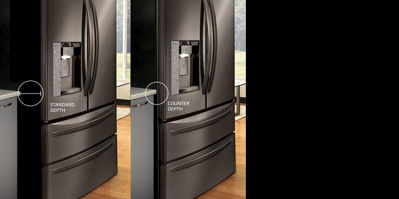 LG counter-depth refrigerators align with countertops and cabinetry for a uniform profile, creating a sophisticated built-in look without the high-end price tag.