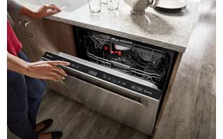 provides the quietest cleaning available from KitchenAid® Dishwashers, so there’s no need to wait to run a wash cycle while entertaining and enjoying meals, even in open concept kitchens.