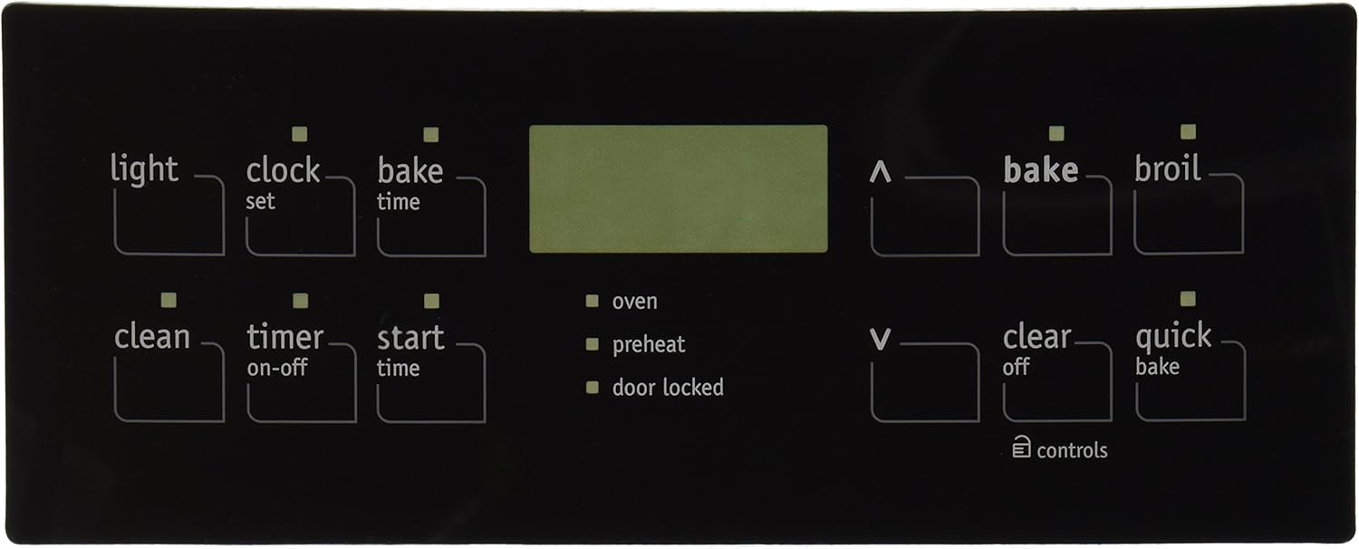 The clock overlay serves as the user interface cover for the oven’s electronic control board. It features printed labels for functions such as bake, broil, timer, and temperature control, helping you easily operate your appliance. Over time, exposure to heat, moisture, and daily use can cause the overlay to fade, crack, or peel, affecting both appearance and usability.