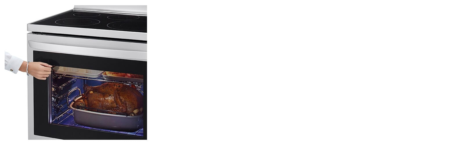 Keep the heat inside with InstaView. With two quick knocks on the oven door you can view your food while cooking to check the progress without letting the heat out.