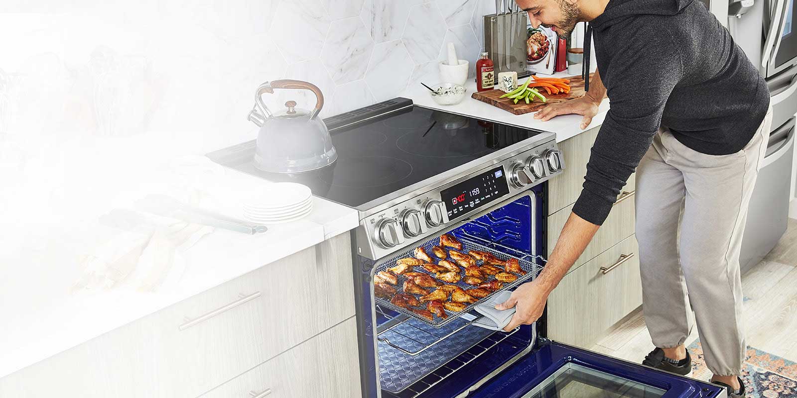 Use the ThinQ app to start the oven, set times, or check on dinner from anywhere. Simply speak to control your oven with Alexa and the Google Assistant.*