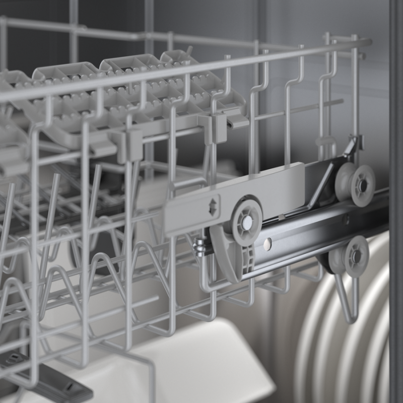 - RackMatic®:adjusts the upper rack to 9 different positions, allowing for taller items like stemware or leaving room for pots and pans below.