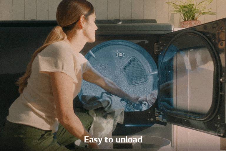 The dual-opening options of the LG EasyLoad™ door make loading and unloading the dryer easier than ever. Swing the door to the side to clear the way for your basket below. Even tight spaces and challenging laundry-room layouts are no match for versatility like this.