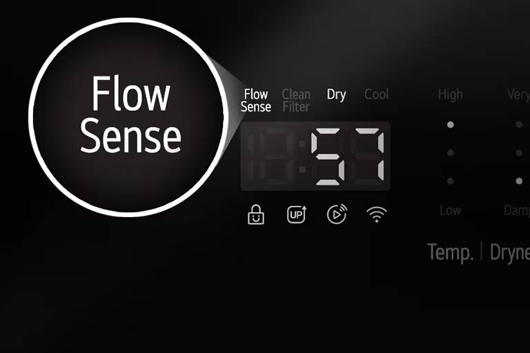 Eliminate the guesswork with LG’s FlowSense duct clogging indicator, which alerts you when it is time to clean the ducts out - helping your electric dryer run with optimal energy efficiency.