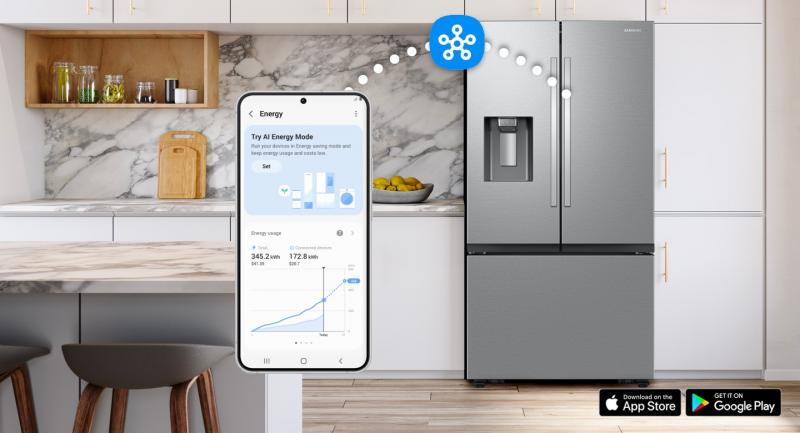 SmartThings Energy lets you monitor and manage your refrigerator's power usage. Reduce your energy use by up to 15%¹ with AI Energy mode, all from your phone.²