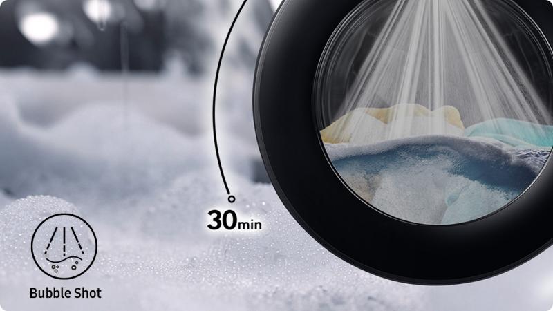 Cut laundry time while getting effortless cleaning. Super Speed cycle completes a full wash in only 30 minutes*. Powerful bubbles clean deep, while Bubble Shot uses strong water jets to rinse away detergent quickly. 3