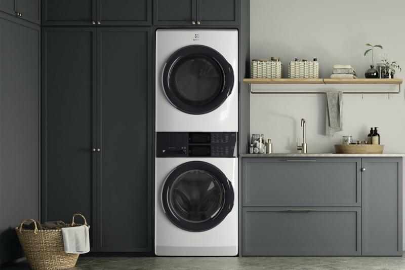 Full-size and fully integrated front load electric Electrolux Laundry Tower features a stacked design that takes up half the floor space, freeing up the laundry room for extra storage, all with an easy to reach control panel. The washer features LuxCare® Wash that provides a thorough clean to clothes and fabrics, plus 15 minute fast wash and fast dry