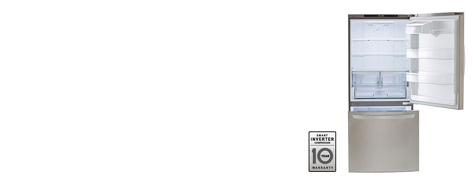 LG's Smart Inverter Compressor controls the temperature of your refridgerator evenly, allowing your food to taste fresher, longer.