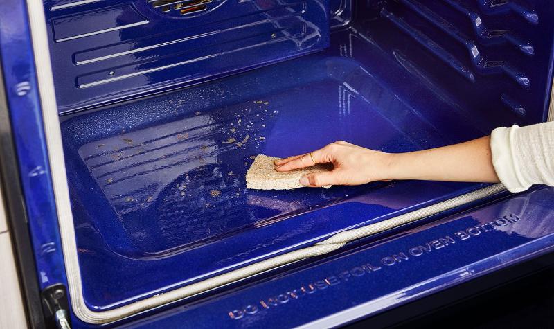 Keep your oven looking like new with the fastest oven-cleaning feature in the industry.* Simply spray the oven with water and select the EasyClean® cycle. This 10-minute cycle lifts soils without chemicals or high-heat thanks to our specially formulated porcelain-enamel interior. Then, easily wipe away the leftover residue.**