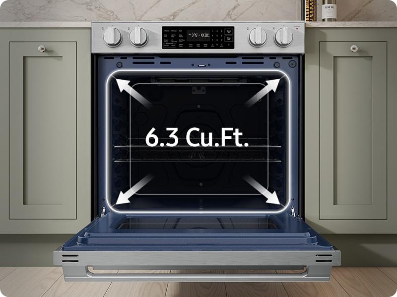 Accommodates large cookware and family-sized meals with a huge 6.3 cu. ft. capacity oven, making it perfect for everyday dinners or entertaining guests. Prepare multiple dishes at once or easily cook large items like a big roast or holiday turkey.